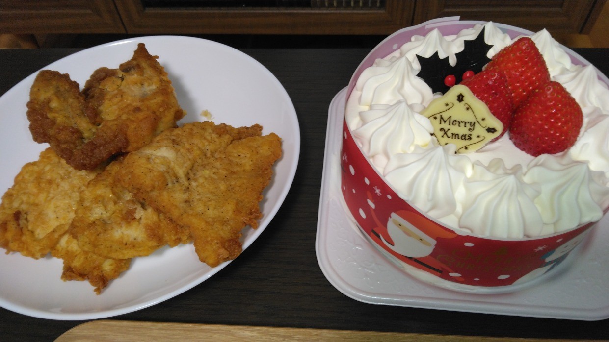 名古屋からは昼過ぎには帰って来て、夕方の自塾の開館前にクリスマスイブということでケーキとチキンをいただきました。夜は仕事なのでなかなかこういったイベントができないのですが、今年は一応の気分が味わえて良かったです。