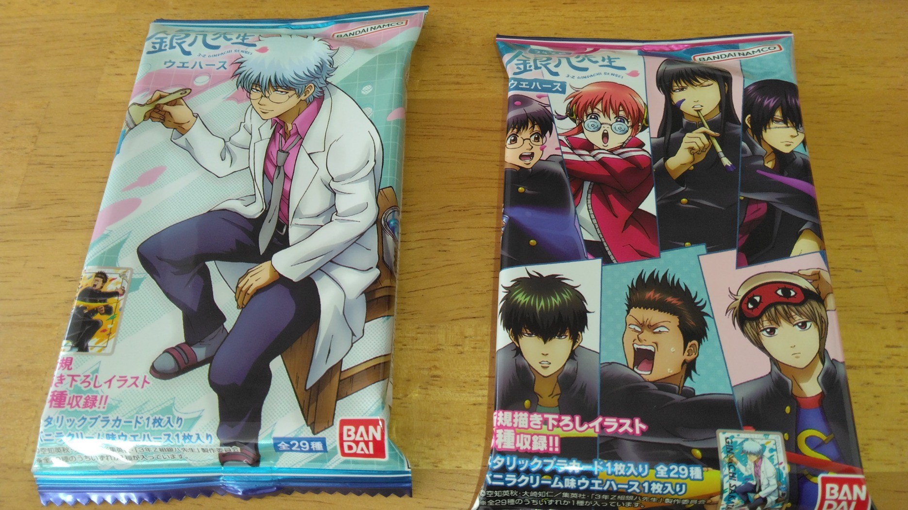 私用で近隣のドンキに買い物に行ったのですが、最近ハマっている「3年Z組銀八先生」のお菓子が目に入って、思わず衝動買いしてしまいました(笑)。中にはカードが入っているのですが、クラス全員がそろっている「お目当ての」カード(右)をゲットできました!