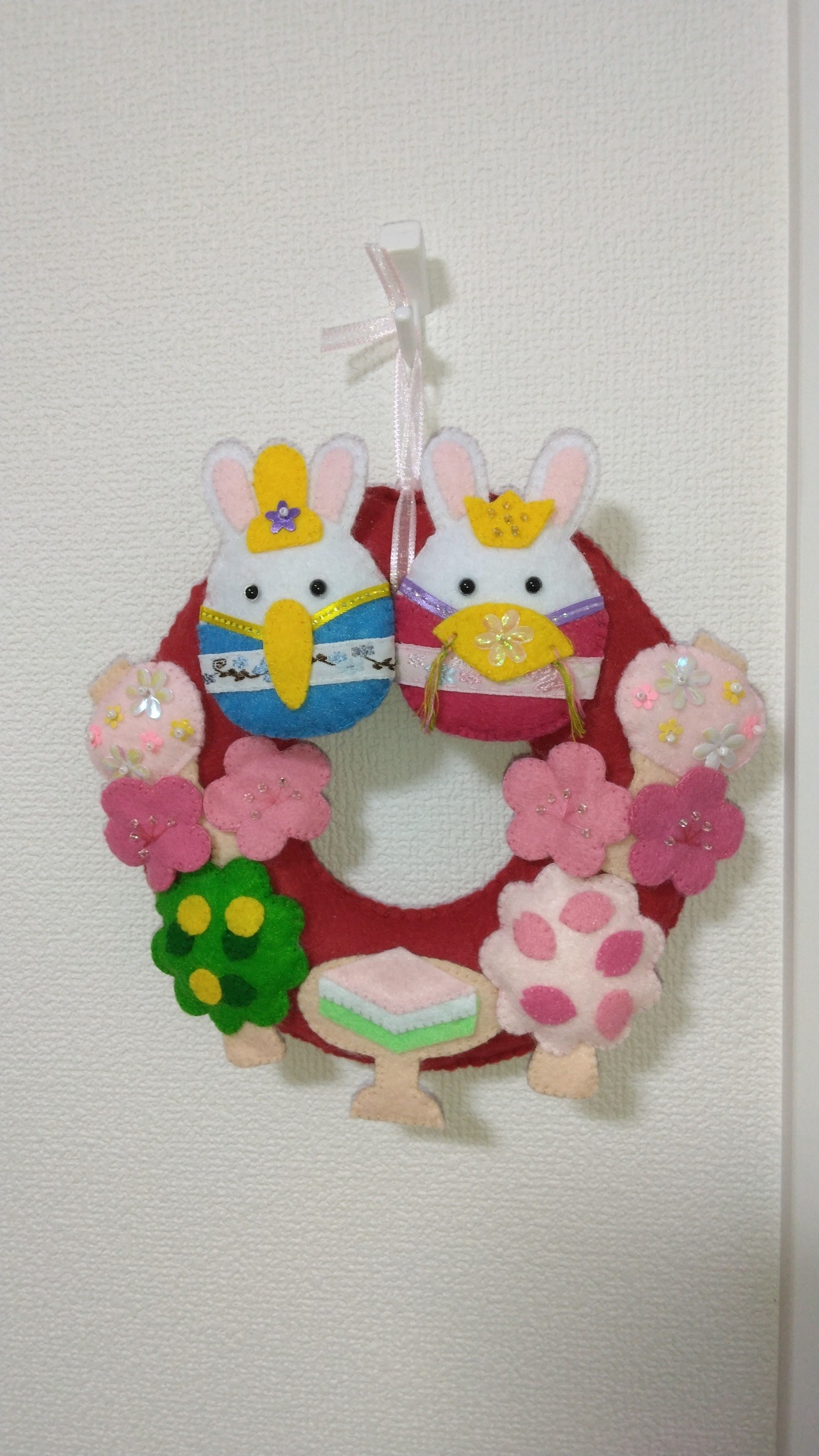 そんな中、バレンタインデーも過ぎて2月後半に突入して、急に「ひな祭り」の空気が漂い始めました。タペストリーもリースもひな祭り仕様になりました!