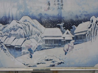さてせっかく「蒲原夜の雪」の話を出したので、今回の出題は「五十三次の雪」についてのものにしようと思います。まぁ、どう考えても太平洋に沿った旧東海道沿いに雪の名所なんてあるとは思えないのですが、実は蒲原以外にももう1カ所、広重によって雪景色が描かれている宿場があります。そこは一体どこでしょう? ただし富士山が描かれていてその山頂に雪が描かれているだけのものは除きます。