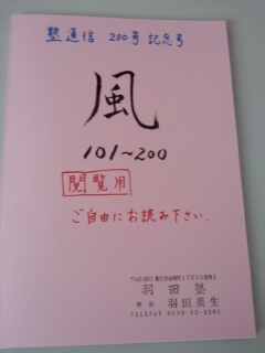 塾内の通信が200号を越えたので記念の冊子を作っていたのですが、今日ようやくそれが完成しました。100号記念の時の冊子の表紙は水色だったので、今回はピンク。筆で題字を書いて完了!! 新旧のスタッフさんたちにも郵送の準備ができました。乱筆乱文な冊子ではありますが、少しの気休めに読んでいただければ…と思います。