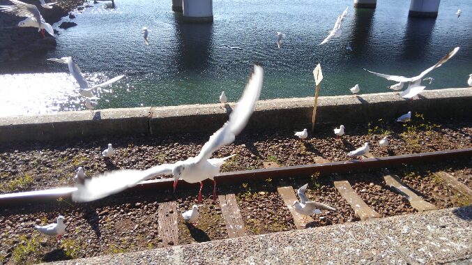 この時期になると浜名湖にゆりかもめの大群がやって来ます。この駅の正面に行きつけの鰻屋さんがあるので、今年もお昼にウナギを食べつつ、ゆりかもめと戯れてきました。ただ土曜日だったので、写真を撮影しているお客が多かったです…。