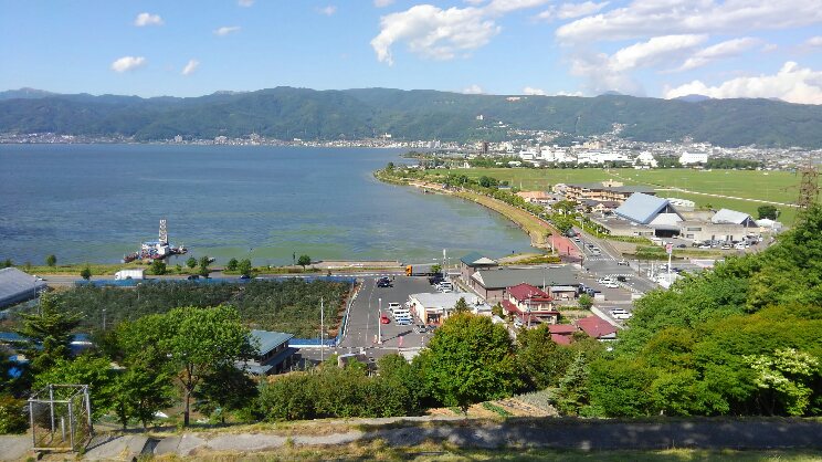 なかなか梅雨らしい天気にならないうちに今日は諏訪湖を楽しみに来ました。やはり景色を楽しむには晴れた日が一番です。