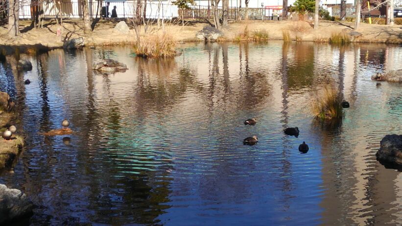 公園ではカルガモがゆったり泳いでいたり、気が早い梅がすでにピンク色に染まっていたり、マイナスイオンを浴びることができました。