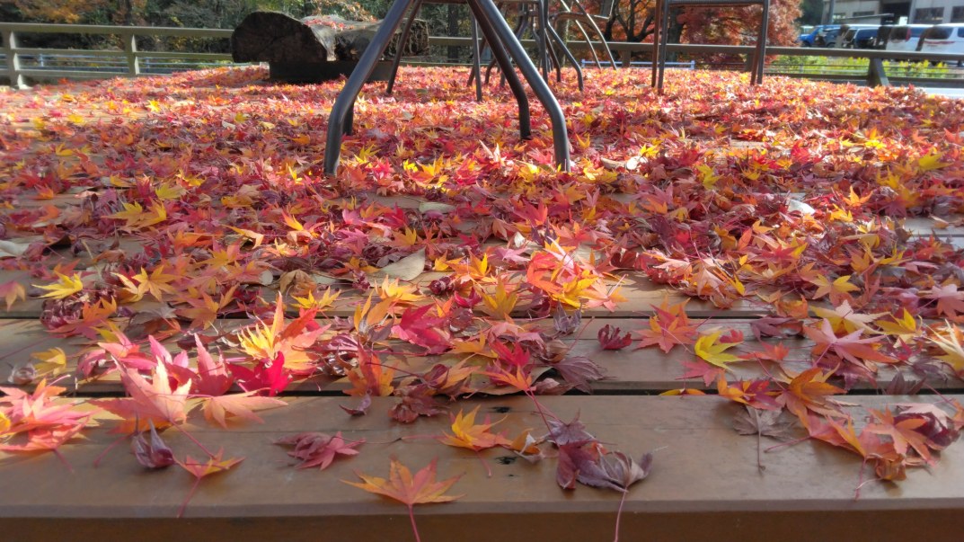 最初に銀の森へ行きましたが、本当にちょうど紅葉が見頃で、青空に映える紅葉も、足元に散る紅葉も、どちらもとても素敵な紅・黄色を見せてくれていました。