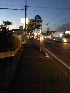 姫街道を横目に見ながら、旧東海道は磐田駅へ向かいます。時刻はすでに4時30分近く。辺りは薄暗くなってきました。しかし磐田駅は一度ゴール地点にしていますから、今回は磐田駅で止まることは出来ません。駅の直前で右に折れ、東海道を次の宿場である浜松に向かいます。見附〜浜松は約16q。4時間くらいかかるはずなので少しでも先を急ぎたいところです。日はどんどん沈み、まさに「秋の日はつるべ落とし」を実感します。清少納言さんの「秋は夕暮れ」をかみしめている余裕はありませんでした。でも暗闇に消えていく松並木は「またあはれなり」でした。