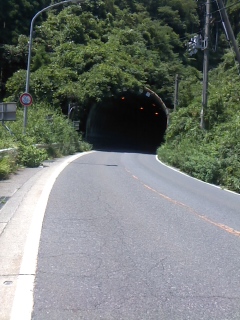 僕にとっての「歩けるトンネル」の条件はまず1つに歩道があること。もし歩道が無い場合には向こう側(出口)が入り口から見えること。そして歩道がない場合には交通量が少ないことも条件になってきます。この虫尾トンネルとこの先にある三田トンネルは、歩道は無いけれど一応条件を満たしています。実はこの香住〜餘部の区間は山の中を無料の自動車専用道路が貫いていて、ほとんどの車輌はそちらへまわってくれます。よってこちらの国道は5分に1台くらいの車が通るのみ。このくらいなら歩道のないトンネルも怖がるに値しません。むしろこの日のような炎天下ウォーキングでは日陰になるし風は通るし、ちょっとありがたいくらいです。