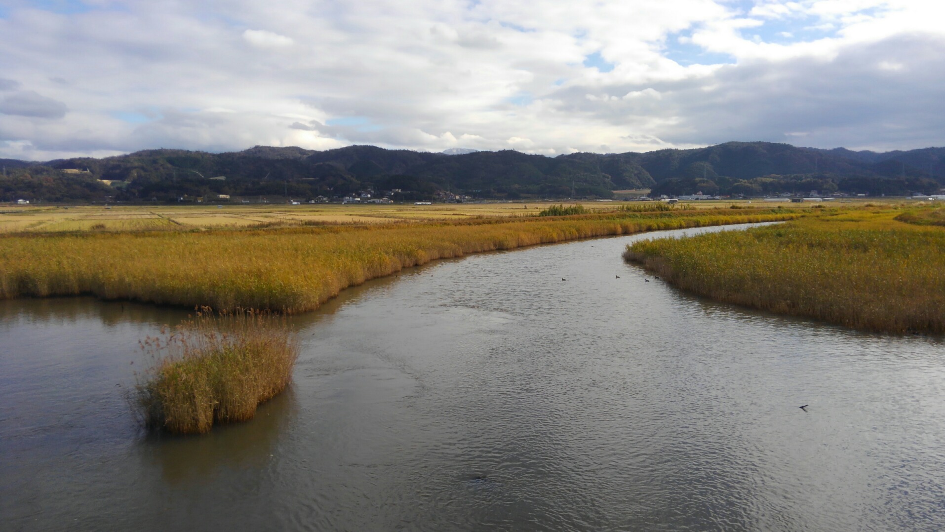 海沿いをずっと歩くウォーキングコースって、ともするとずっと海ばかりで疲れてしまったりするんだけど、ここら辺りの風景は、海があると思えば普通に平野があり、また水田と川が広がり、退屈しないウォーキングです。