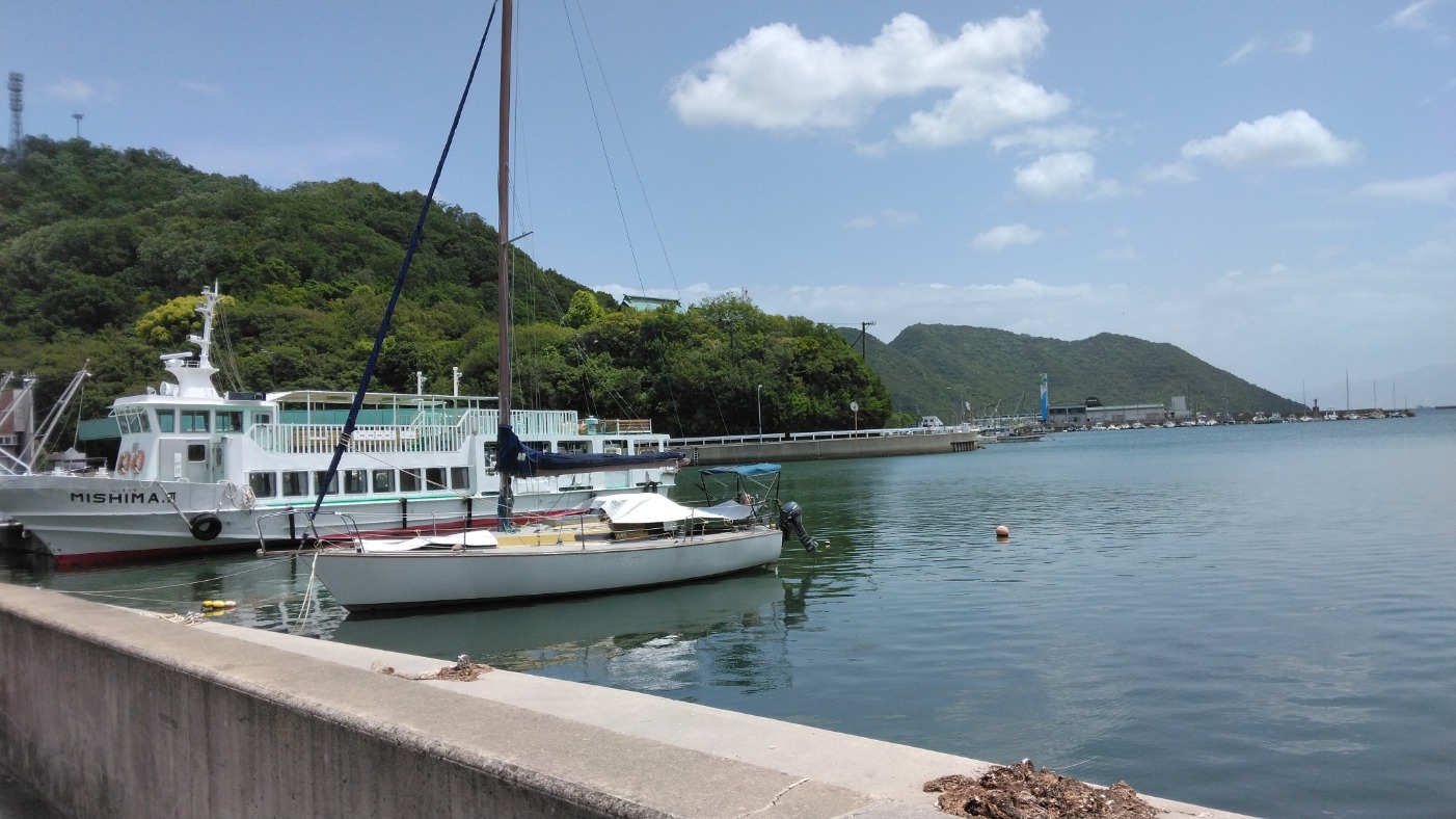 さて、山陽地方を東へ向かっているこの旅は、広島から内陸部をまわるコースをとっていたため、このところずっと海を見ていませんでした。なので今回は瀬戸内海の内海をゆっくり眺めながら、久しぶりに海風を浴びるコースです。歩き始めて30分もしないうちに早速舟を目の当たりにして、潮の香りが鼻腔に流れ込んできました。